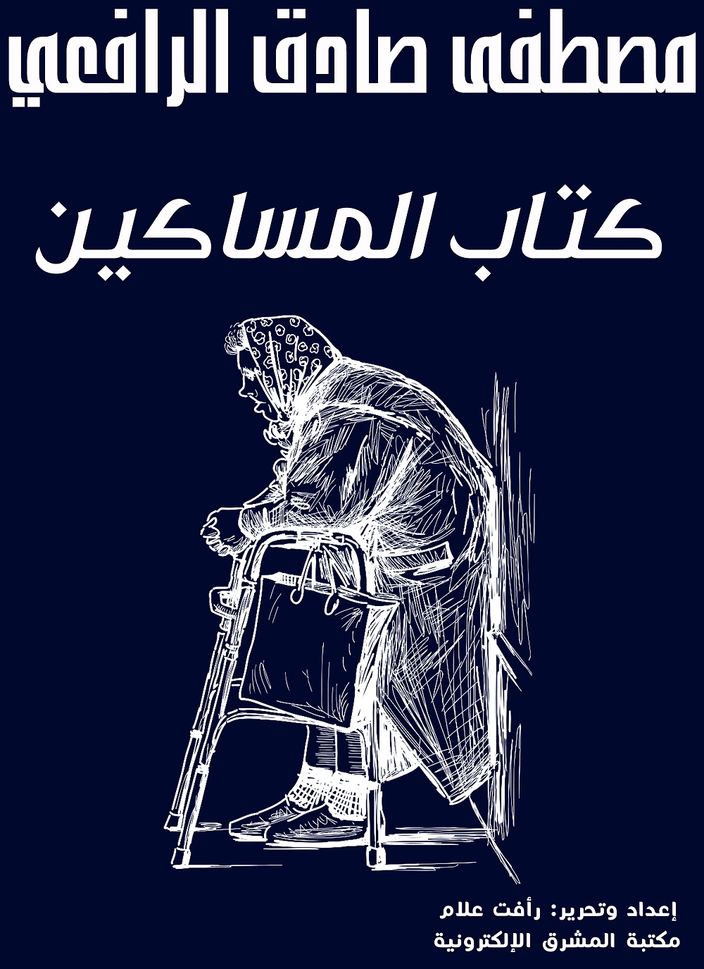 «المساكين» هو كتاب نثري صيغت صورُه من آلام النفس الإنسانية في صورة قصصية يرويها لنا الكاتب على لسان الشيخ علي شيخ المساكين، الذي يقصُّ مأساة الفقر والعوز الإنساني في رحاب قصصٍ تحمل الكثير من العبر والعظات الدينية والاجتماعية. ويعرض الرافعي في هذا الكتاب فلسفة الفقر التي يصيغ تفاصيلها بواسطة أدواتٍ من البلاغة الأدبية التي عهدناها منه؛ لأنه المبدع الذي ينظر إلى مأساة الفقر بنظرة الفيلسوف ومداد الأديب الذي يحوّل مأساة الواقع إلى صورةٍ بلاغية تحوّل الفقر إلى طاقة إبداعية، تضع الفقر في صفحاتٍ من الحكمة الفلسفية والبلاغة الأدبية.