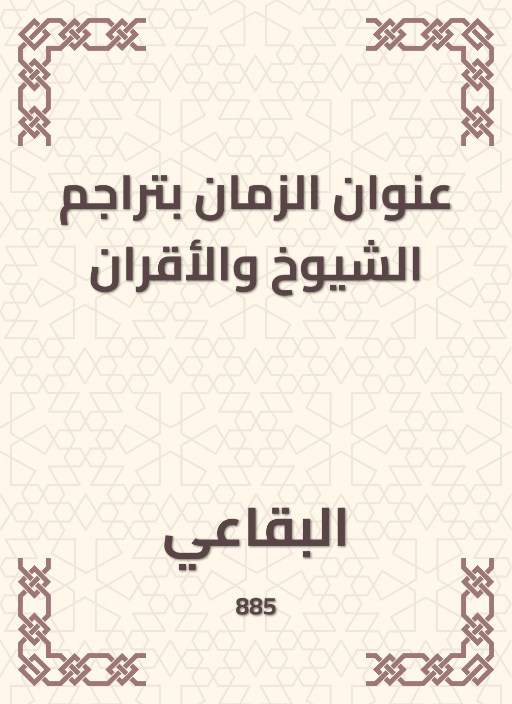 عنوان الزمان في تراجم الشيوخ والاقرانهو كتاب في الطبقات والتراجم، ألفه الحافظ برهان الدين البقاعي ،ذكر المؤلف في كتابه تراجم وخطب ومرويات شيوخه الذين أخذ عنهم علمه ودرس ونشأ على يديهم، وقد قسم كتابه إلى قسمين : الأول للرواة والثاني للمرويات.
